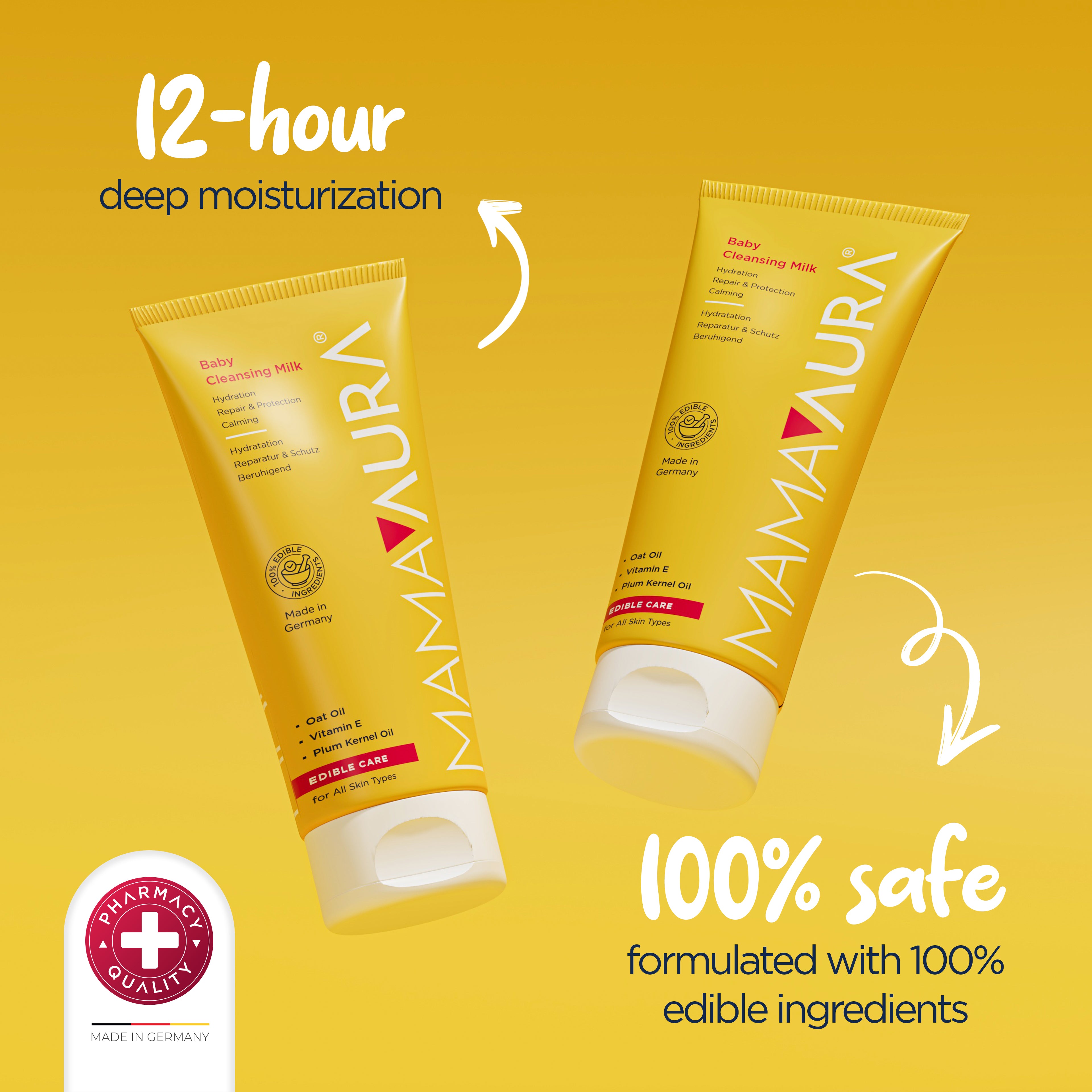 Newborns have extremely delicate skin that requires special care. Mamaaura Cleansing Milk is formulated with food-grade ingredients, making it safe and gentle enough for the most sensitive skin. It cleanses without stripping natural oils, ensuring the skin remains soft and hydrated.