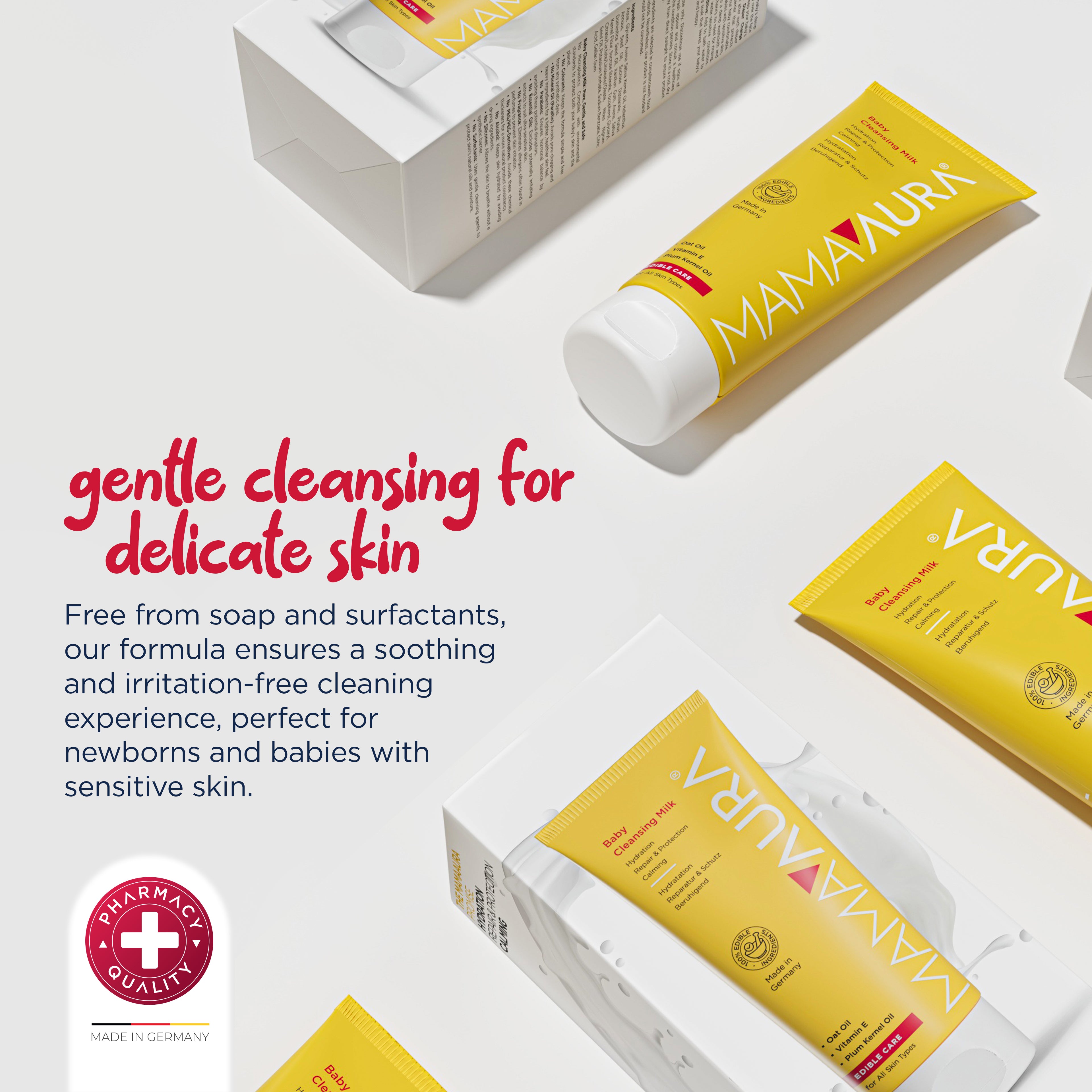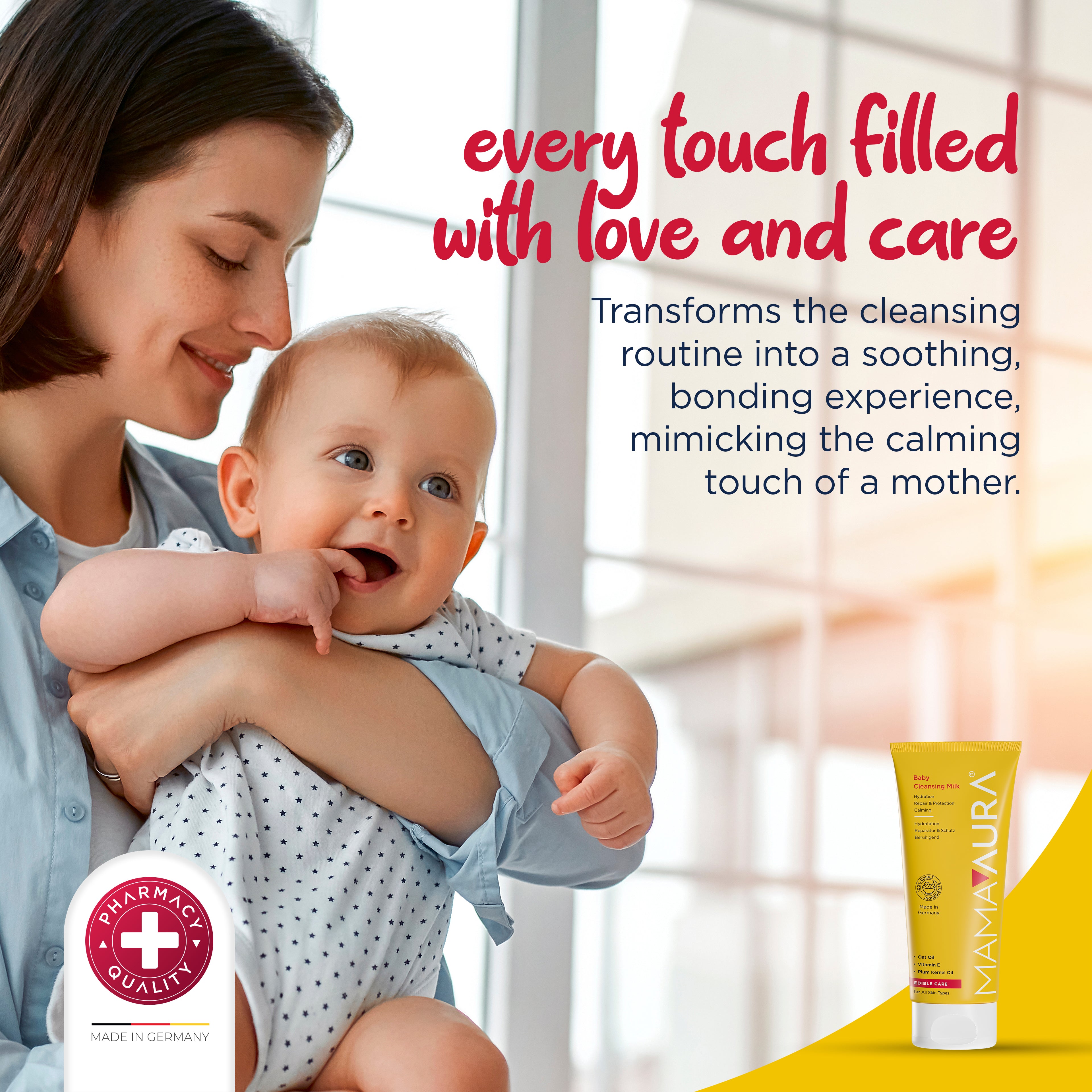 Mamaaura Cleansing Milk is designed to meet the unique needs of infant skin, ensuring gentle cleansing, hydration, and protection with every use.
