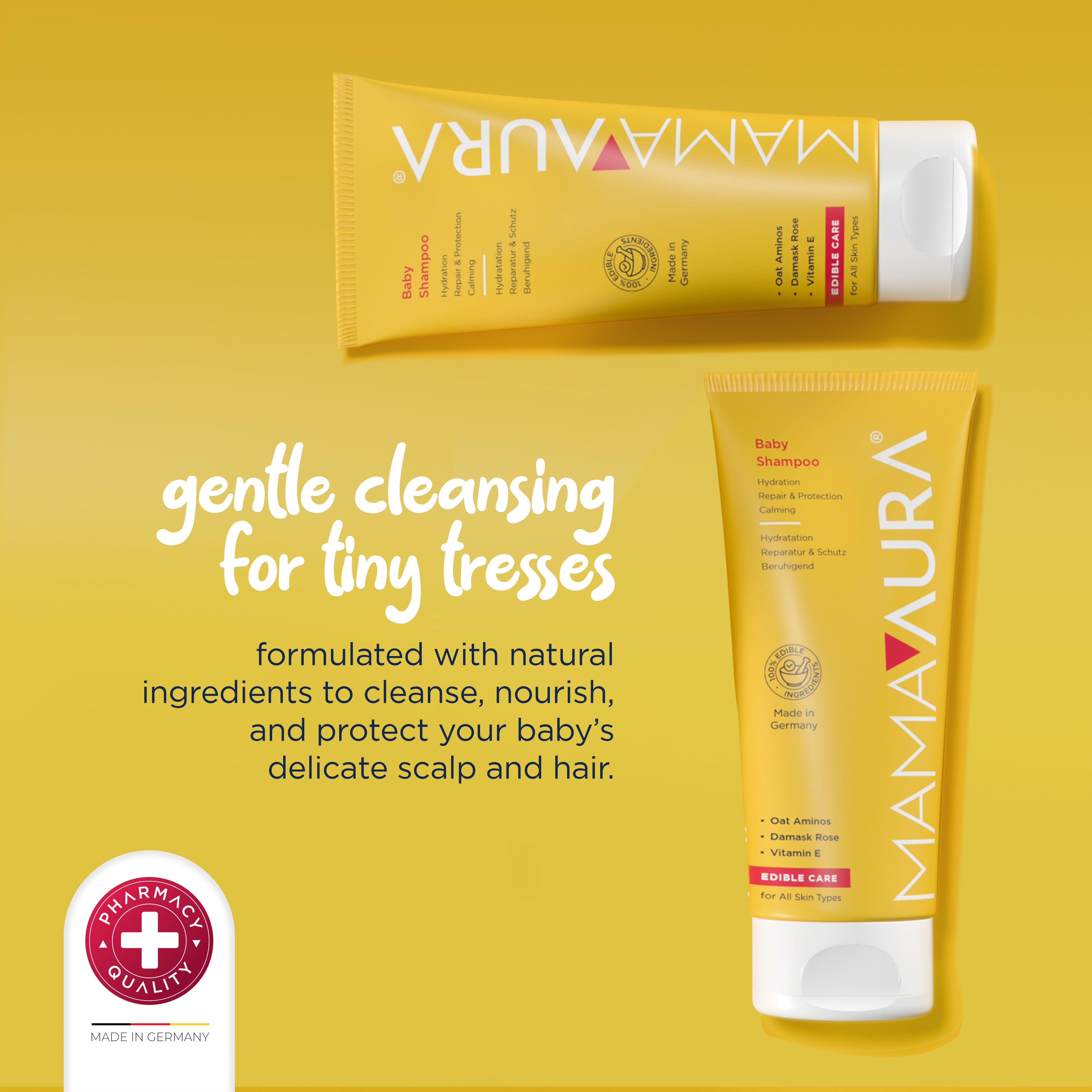 Safe and Natural Ingredients Safety is paramount with Mamaaura Baby Shampoo. It is free from harsh chemicals, ensuring no irritation for your baby's sensitive scalp. The product is dermatologically tested and proven to be gentle, making it suitable for daily use.
